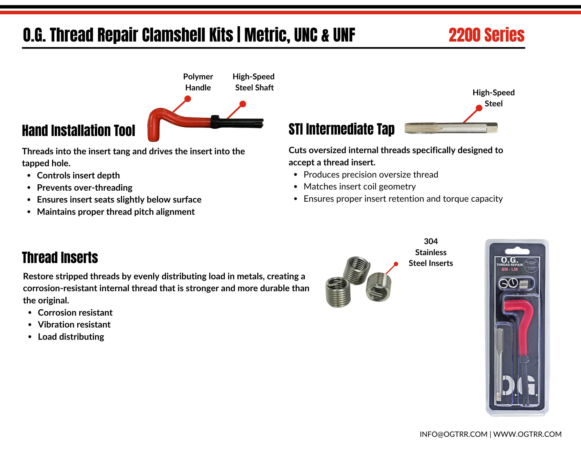 O.G. Thread Repair Clamshell Kits are your go-to tools for a speedy repair. Their compact and portable design, allows you to take them anywhere you need.
